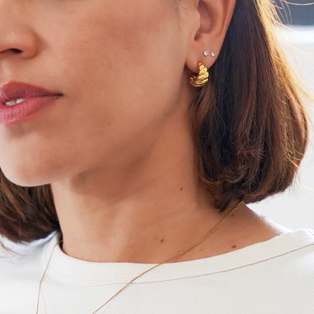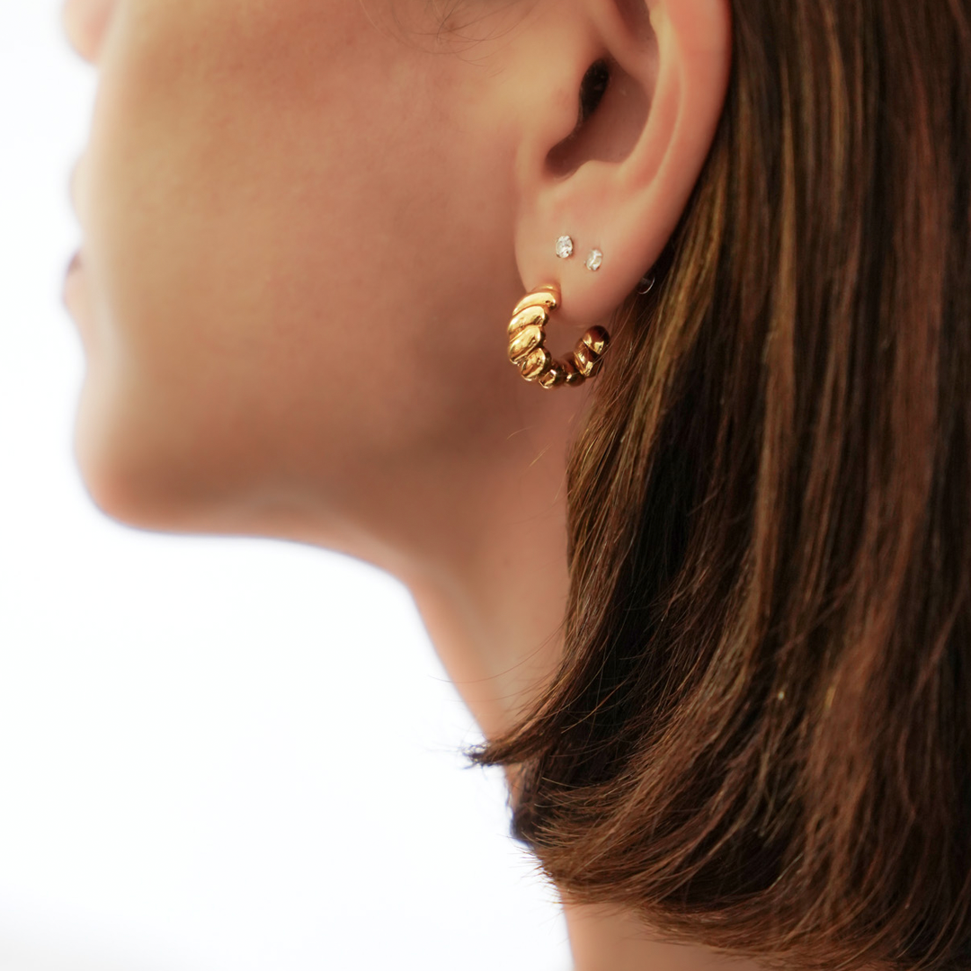 Adorn your ears with a delicious twist. Introducing our adorable croissant-shaped hoops - best enjoyed with your morning cuppa.