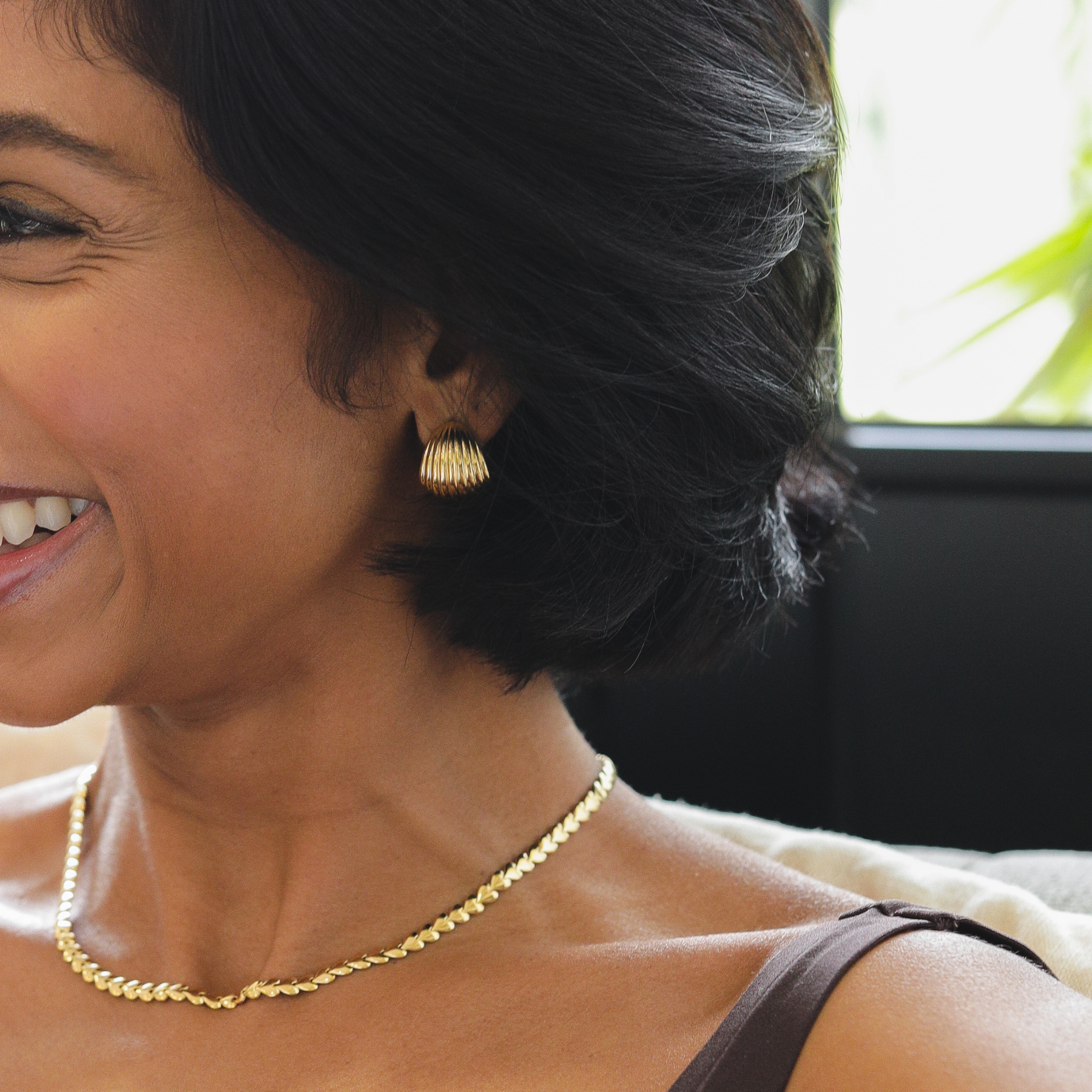 Inspired by any millennial mum’s hoops of the 80s, we wanted to bring back this geometric Art Deco design. It screams vintage and brings a statement style without losing its versatility. Striking enough for a night out, yet refined enough to dress up your everyday, this is a must-have for the coming season.