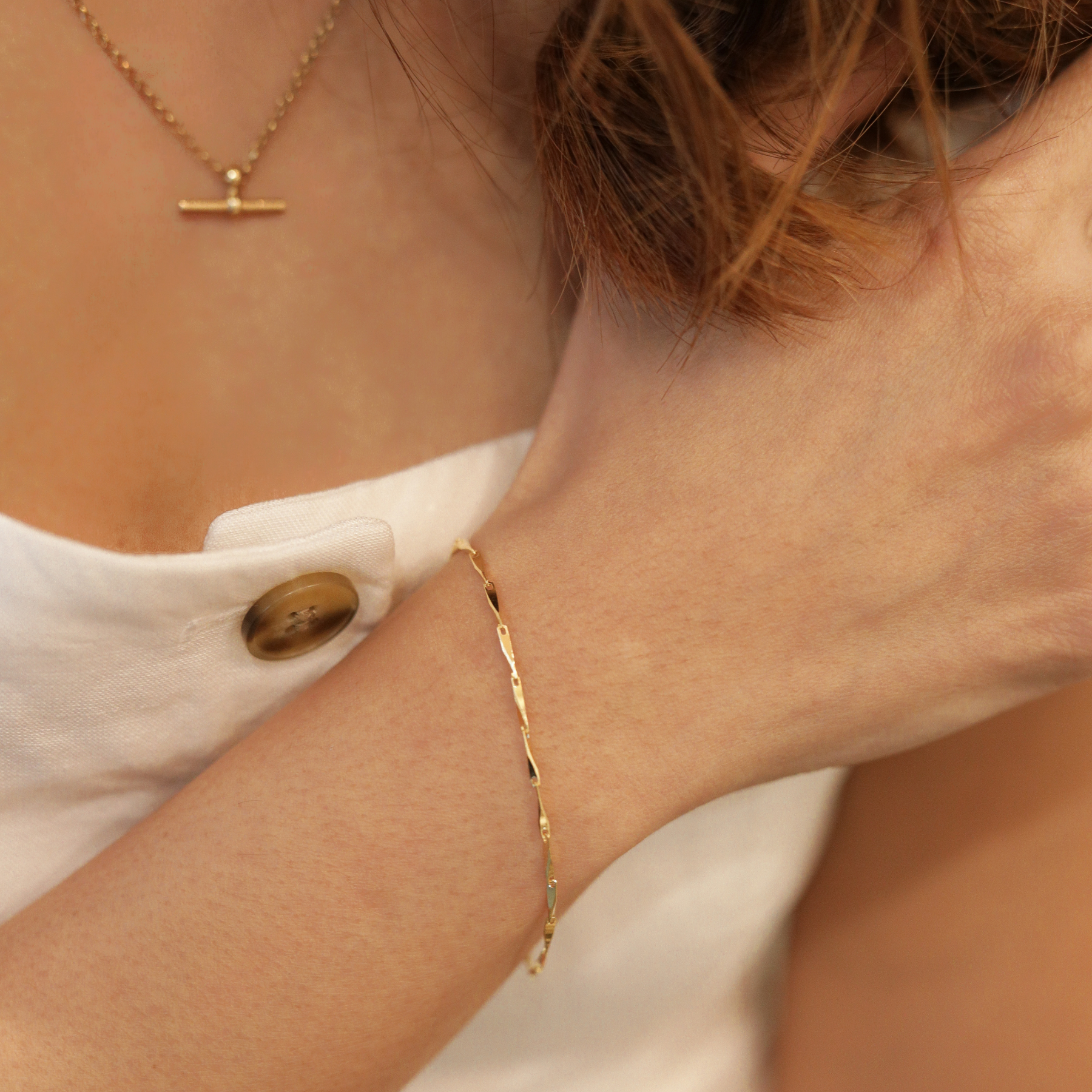 Dainty, light-catching, with just the right amount of shine. Our new Twist Link bracelet is all about effortless elegance - its subtle facets catch the light with every move. Available in a range of lengths to fit different wrist sizes. Available in Gold Vermeil and Rhodium.